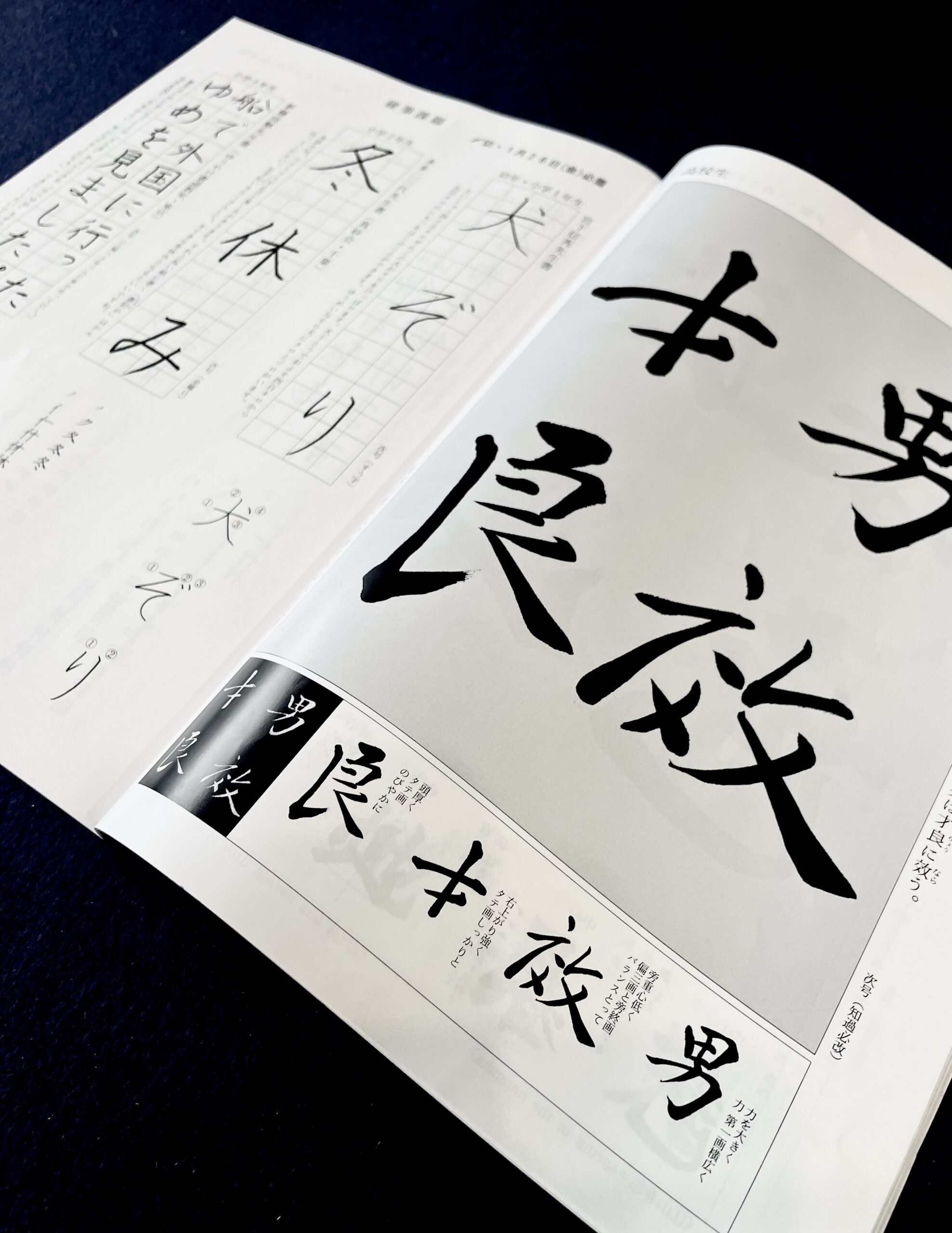 競書雑誌を毎月購入し、お題の文字を書き、合否の返答をもらいます。基礎的で王道な書道教室の在り方です。級が上がるのでモチベーションの維持じも繋がります。子供から大人まで可能です。
